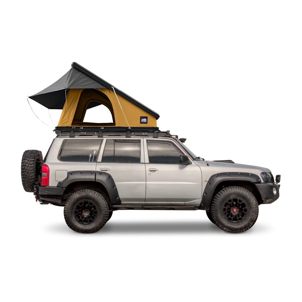 Strešni šotor TRIANGLE TAHAT 2.1 znamke OFFLANDER je trpežen in prostoren model, zasnovan za večja terenska vozila in avanturistične odprave. TAHAT 2.1 zagotavlja vzdržljivost, hitro postavitev in vrhunsko udobje za dve osebi. Njegov trden pokrov prenese vožnjo skozi gozdove, puščave in celo snežne nevihte. Pripravite vozilo, izberite destinacijo in uživajte v svobodi kampiranja.