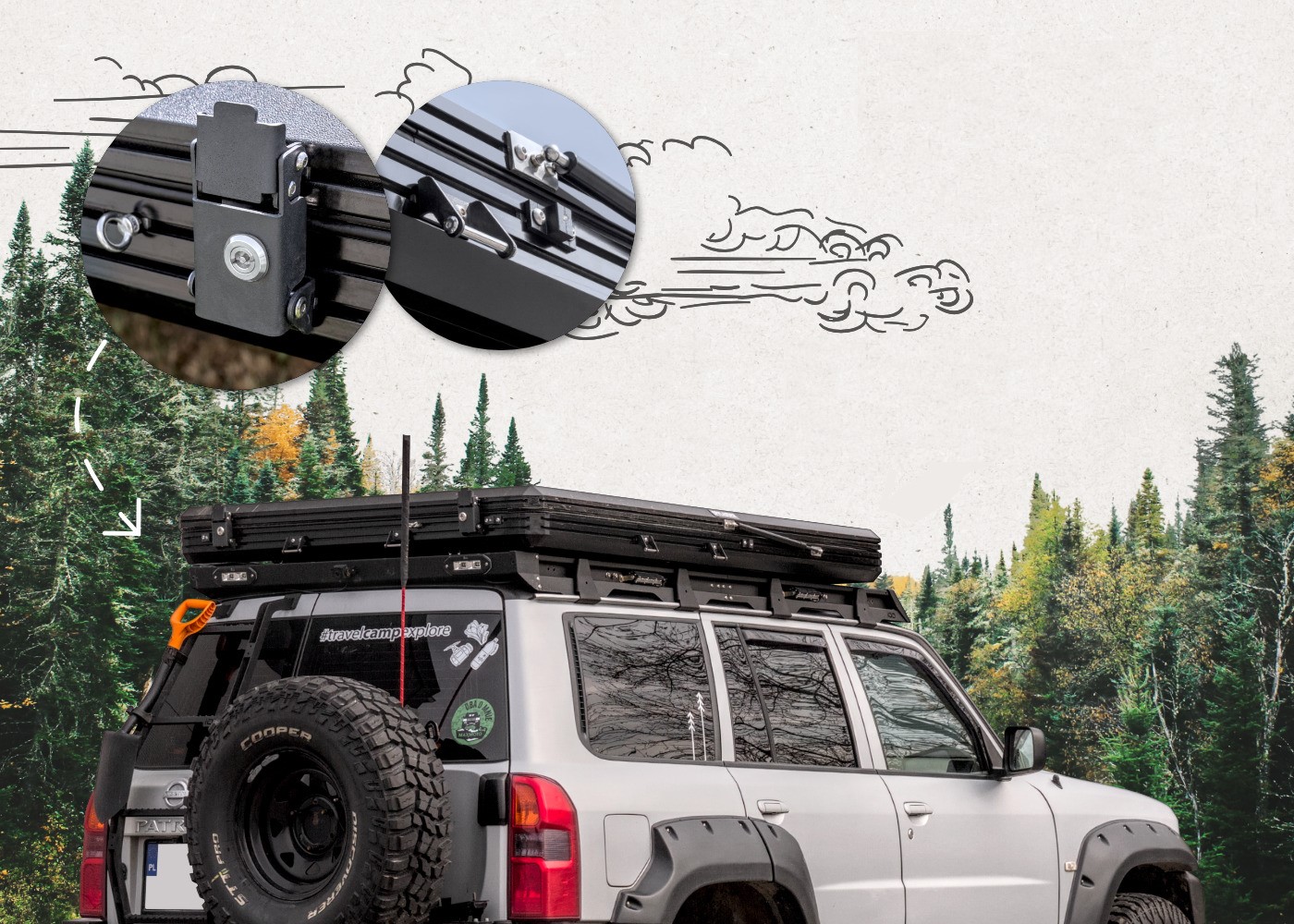 Zaradi teže le 74,5 kg je šotor primeren za večino strešnih prtljažnikov in se zlahka namesti na različna vozila.